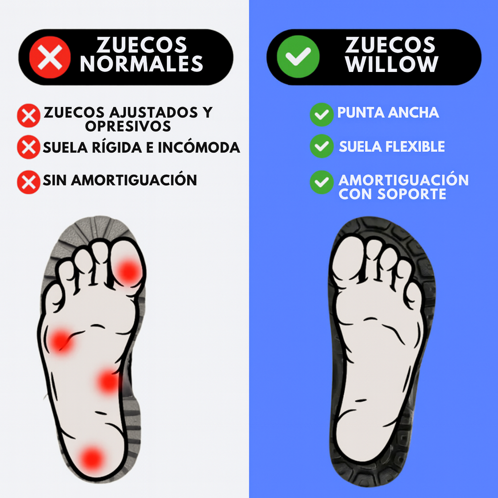 Al elegir zuecos Willow, eliges comodidad, pies sanos y una pisada realmente natural.